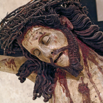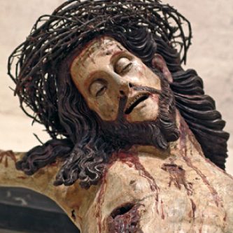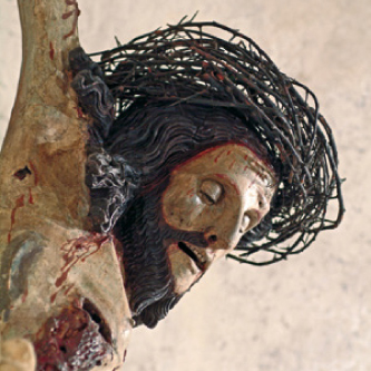 La chiesa è il cuore del Santuario, la chiesa della conversione di Francesco. Nata in più tempi, la parte più antica è quella sul fondo con abside decentrata e coro cinquecentesco addossato sotto il basso voltone. L’attenzione della fede si volge al tempietto ligneo del tabernacolo su antica colonna: lì è il Signore. Francesco diceva in ginocchio: